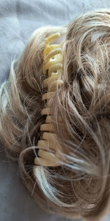 Crafted with curly, voluminous hair strands and attached to a large, secure grab clip, this extension is easy to wear and stays in place all day. Whether you're going for a laid-back, casual look or need a chic, quick style for a busy day, the Messy Bun Hair Extension is your go-to accessory. Simply clip it into your natural hair and voilà—instant volume, texture, and a gorgeous messy bun with minimal effort.